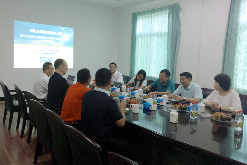 2018年07月25日,九州通醫(yī)藥集團董事長劉樹林先生一行蒞臨海南全星制藥有限公司調(diào)研并指導(dǎo)工作。全星制藥董事長劉全勝先生攜公司領(lǐng)導(dǎo)班子一同參加了座談會,并對劉樹林先生一行的到來表示熱烈的歡迎。雙方就企業(yè)的發(fā)展愿景及醫(yī)藥行業(yè)的發(fā)展前景展開了討論。